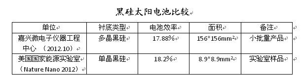 ÆäÀàËÆµÄ¹¤×÷£¬ÈçÃÀ¹ú¹ú¼ÒÄÜԴʵÑéÊÒ£¨NREL£©²ÉÓÃ¸ßÆ·ÖʵÄÇøÈÛ£¨Fz£©µ¥¾§£¨8.9¡Á8.9mm2£©×÷Ϊ³Äµ×£¬ÖƱ¸µÄºÚ¹èÌ«Ñôµç³ØÐ§ÂÊΪ18.2£¥£¬µ«Éд¦ÓÚʵÑéÊÒÑùÆ·½×¶Î¡££¨Nature Nanotechnology£¬ 2012Ä꣩¡£